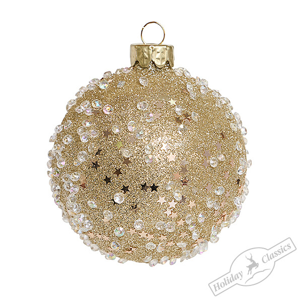 Шар "Льдинки и звездочки" шампань (стекло) 8 см