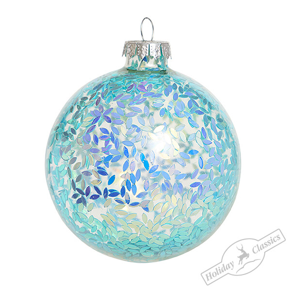 Шар "Ледяная фантазия" с голубыми лепестками (стекло) 8 см