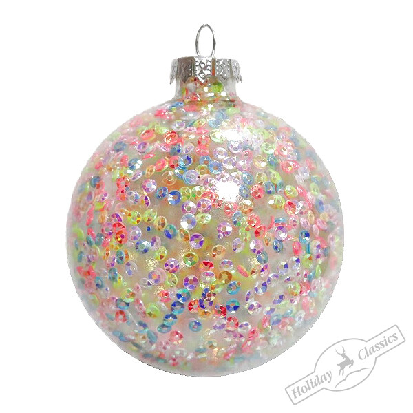 Шар "Ледяная фантазия" с разноцветным бисером (стекло) 8 см