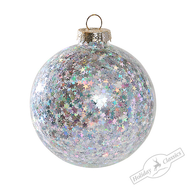 Шар "Ледяная фантазия" с серебряными звездочками (стекло) 8 см