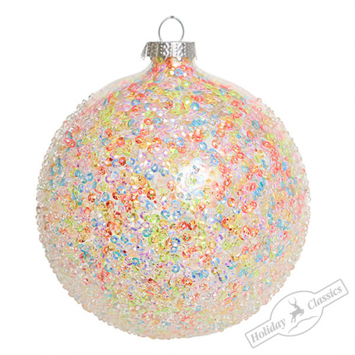 Шар "Ледяной дождь" с разноцветными пайетками (стекло) 8 см