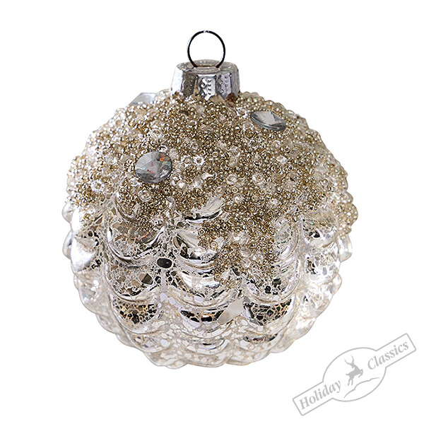 Шар "Римский" серебряный винтаж (стекло) 8 см