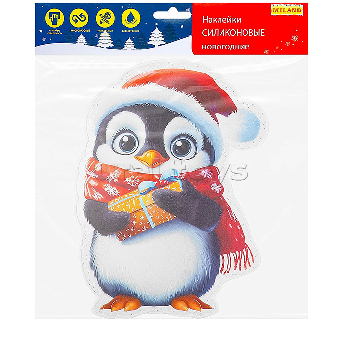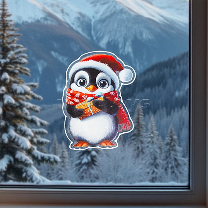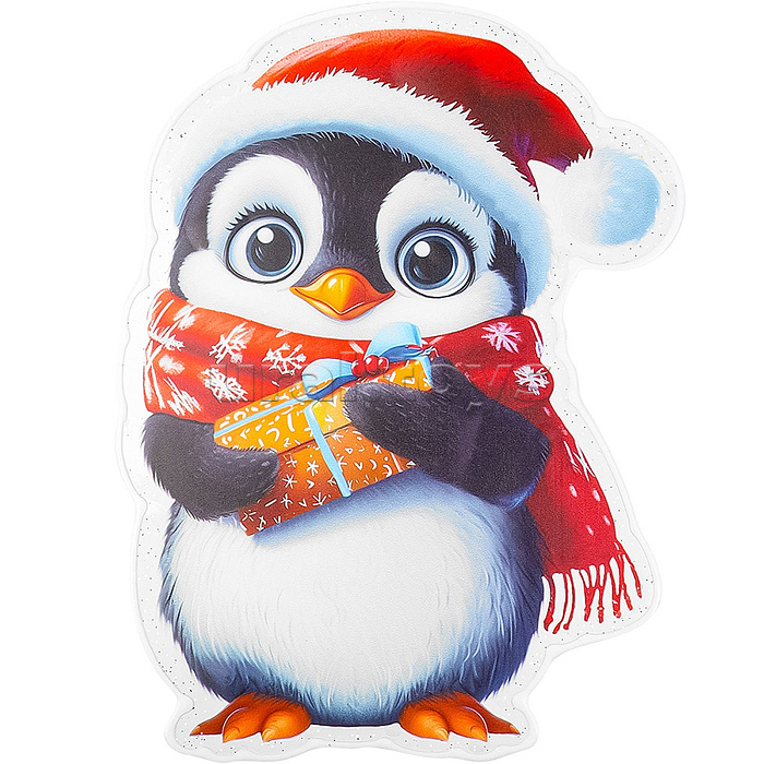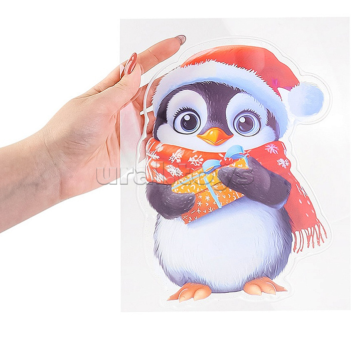 Силиконовая новогодняя наклейка "Новогодний пингвин" 20*25 см