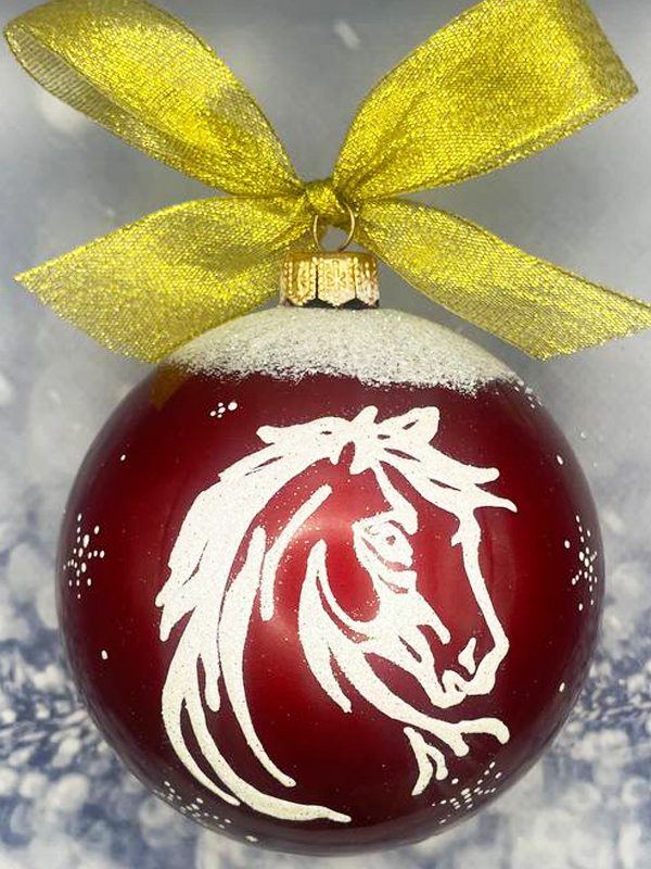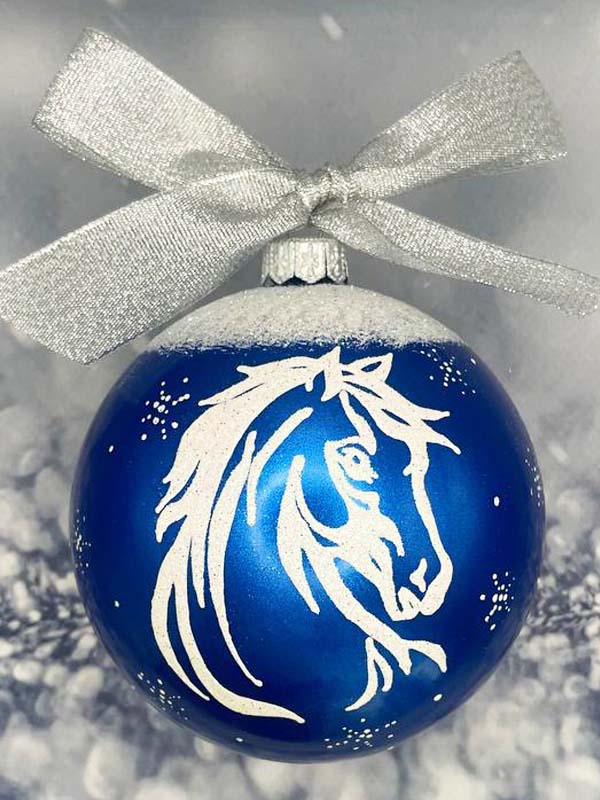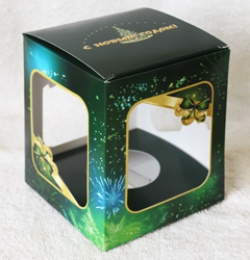 Двусторонний стеклянный елочный шар диаметром 100 мм. Одна сторона шара уже с нанесенным изображением новогодней тематики представленным на фото, другая сторона для Вашего пожелания (имени, поздравления).