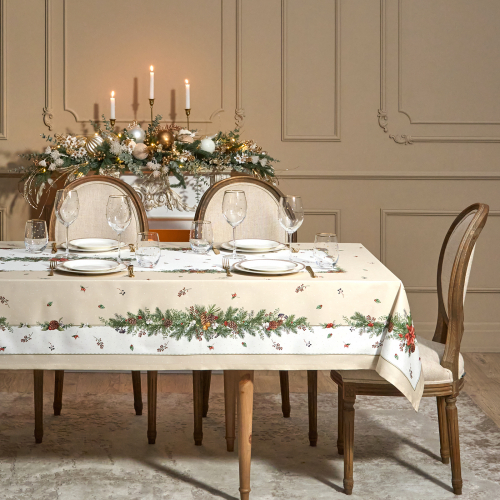 Особым направлением бренда «SANTALINO» является изготовление столового белья (скатерти, салфетки, дорожки (раннер), плейсметы, полотенца, фартуки) по эксклюзивным дизайнам наших художников, воплощённых в цифровой печати, на современном оборудовании. Для пошива изделий используются только натуральные материалы 100% хлопок, плотность ткани составляет 190 гр\м2, она имеет приятную структуру в мелкий рубчик и называется твил, отличается хорошей капиллярностью (впитываемость влаги), драпируемостью, износостойкостью, ткань проходит процесс каландрирования, что делает её более плотной и придаёт лёгкий атласный блеск, предотвращает образование так называемых «катышек» т.е. уменьшается пилингуемость ткани. Цифровая печать позволяет перенести на изделия не только всё богатство красок и оттенков, но и придать особую прочность крашению, ткань не теряет своей яркости даже после 100 стирок. Изделия легки и неприхотливы в уходе, стирать нужно при температуре 40С, гладить при температуре от 110-170С с отпариванием, но нельзя подвергать хлорному отбеливанию. Для удобства эксплуатации на ряд изделий, такие как фартуки, скатерти, дорожки может наноситься водогрязеотталкивающая пропитка, которая не влияет на внешний вид изделия, но позволяет избежать сильного загрязнения при использовании.