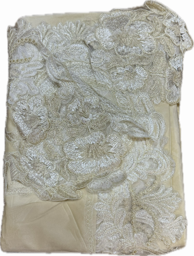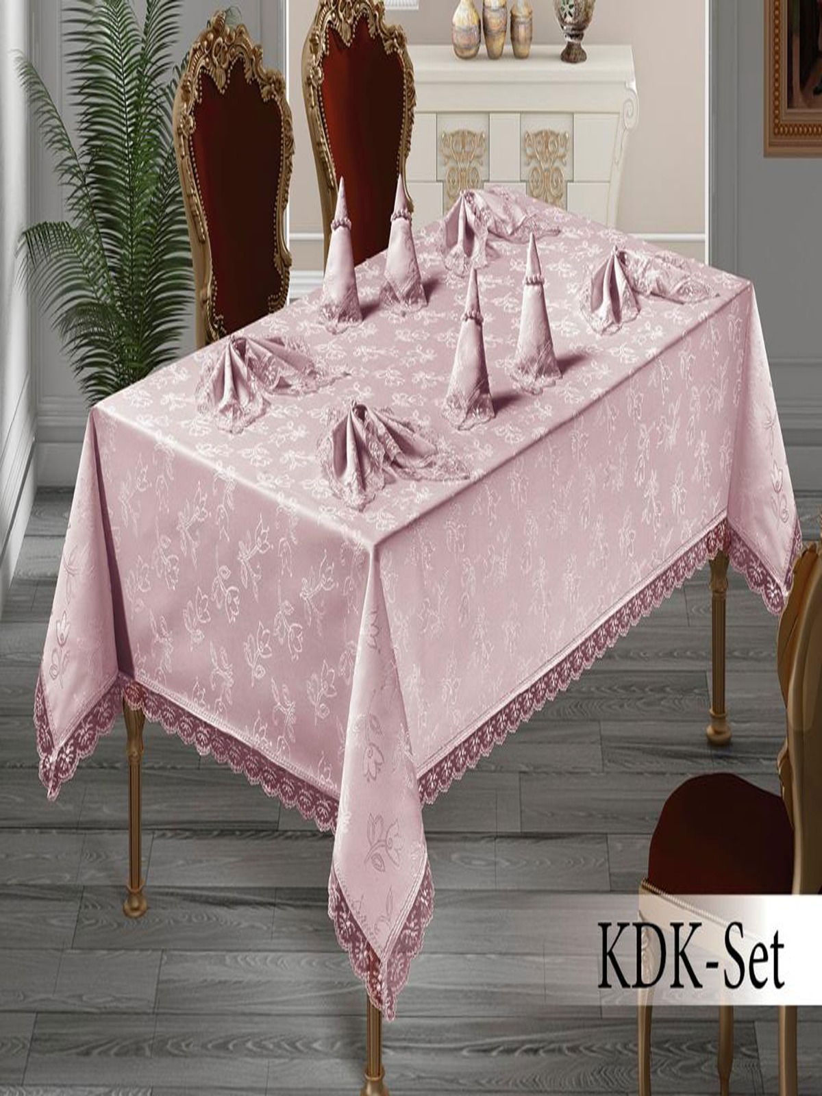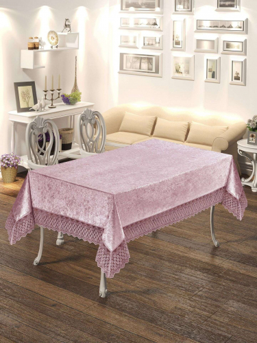 Скатерть DO&CO с кольцами и гипюром 11253 LUX KDK MARIN р-р 160х220 и 8 салф - пудра