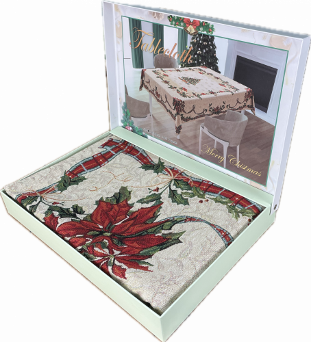 Скатерть гобеленовая с люриксом в подарочной коробке ЕЛОЧКА р-р 140х220