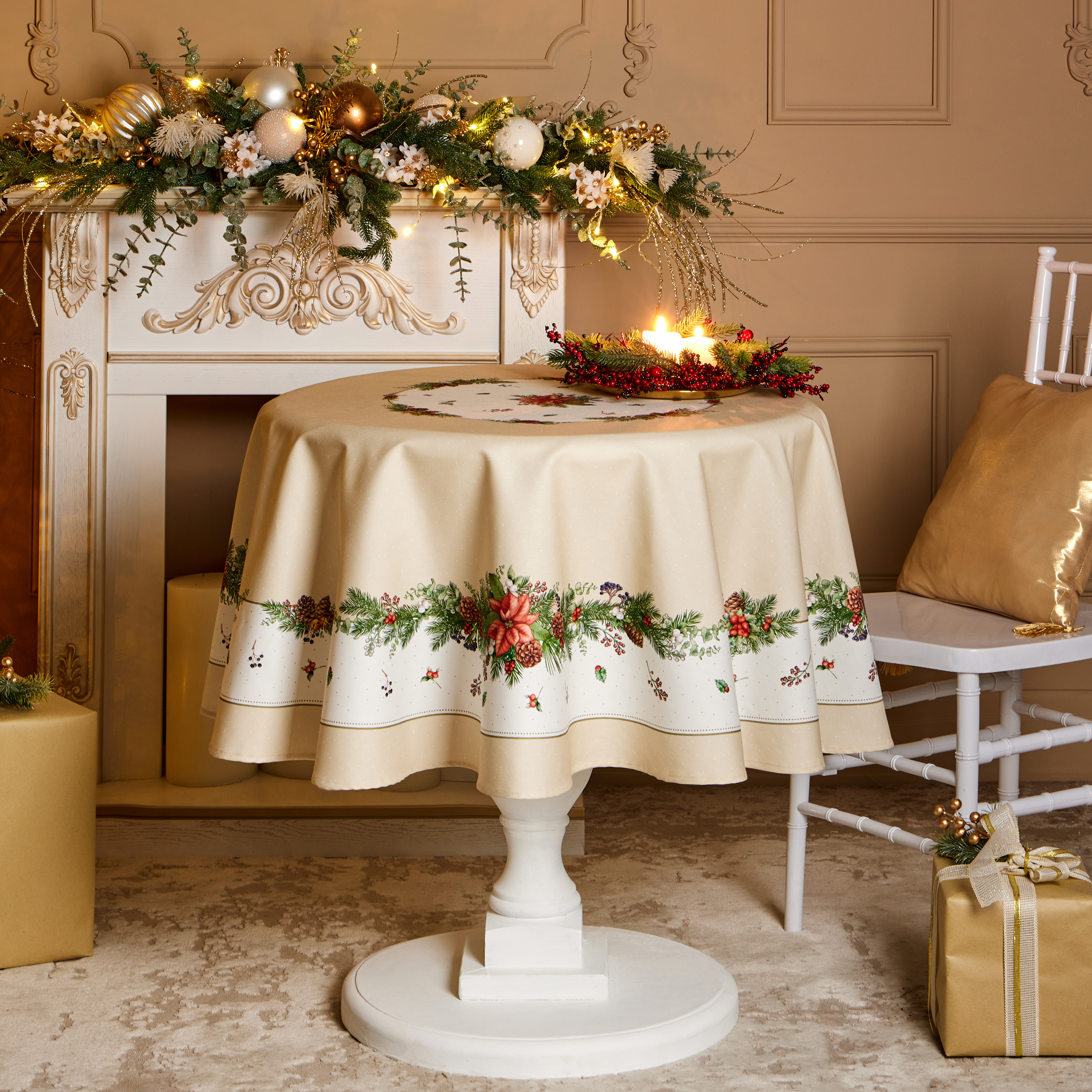 СКАТЕРТЬ КРУГЛАЯ "CELEBRATION"150 СМ ,БЕЖЕВЫЙ, 100% ХЛОПОК ,ТВИЛ ГОРОХ С ПРОПИТКОЙ