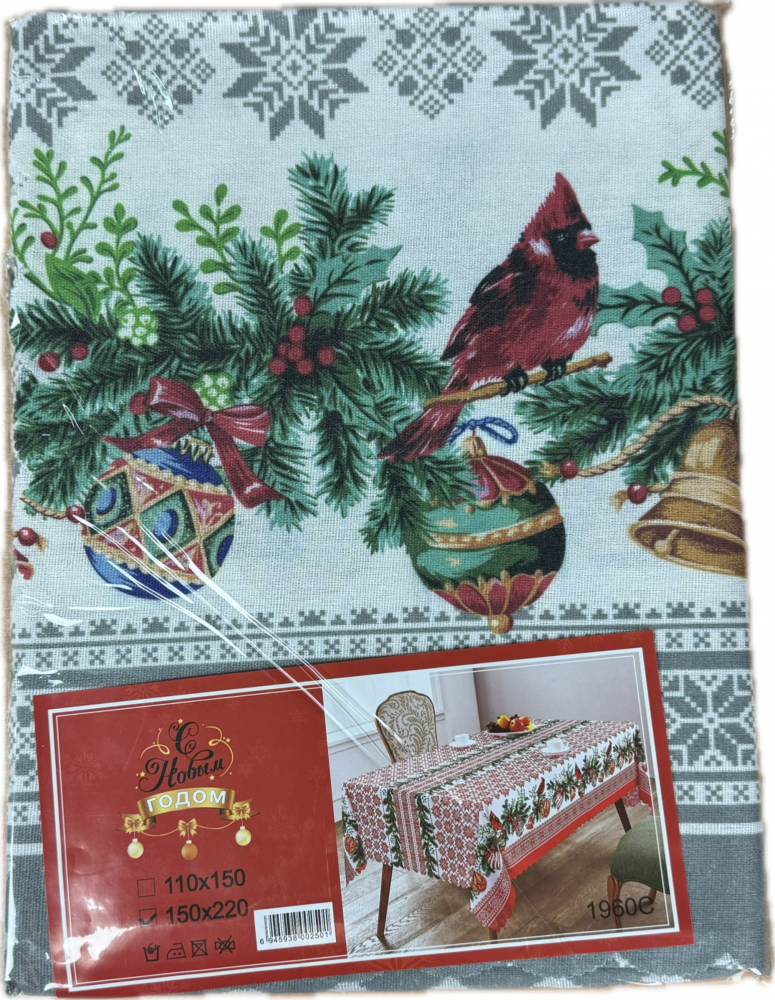 Скатерть льняная 1960 С НОВЫМ ГОДОМ ЕЛОВЫЕ ИГРУШКИ - серый