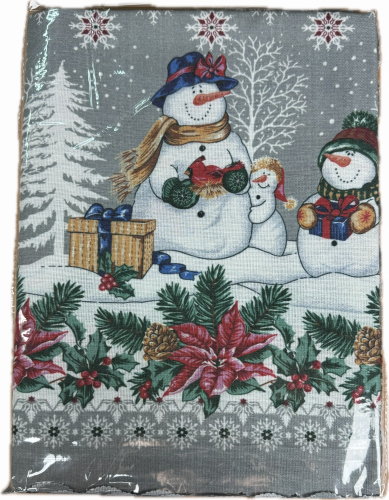 Скатерть льняная 1960 С НОВЫМ ГОДОМ СНЕГОВИЧКИ В ЛЕСУ - серый