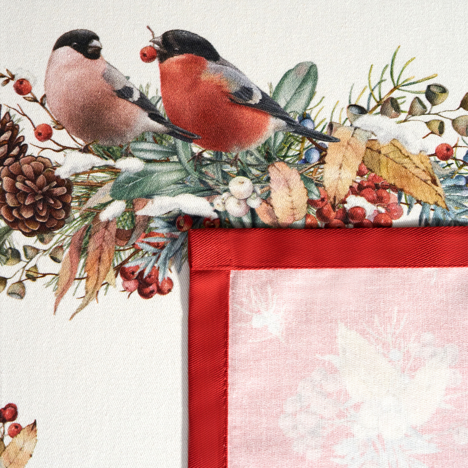 СКАТЕРТЬ "МОРОЗКО.СНЕГИРИ" 140Х180СМ, КРАСНЫЙ, 100% ХЛОПОК,ТВИЛ ПРОПИТКА