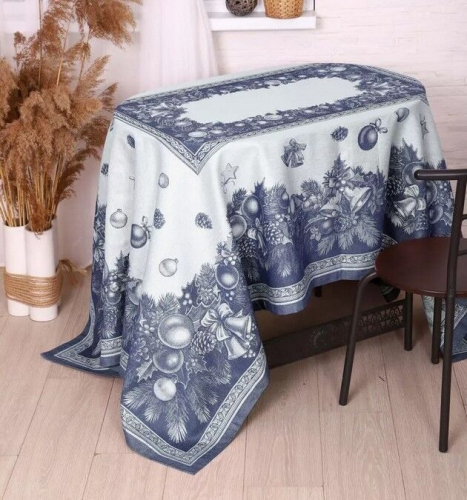 Скатерть Премиум круглая "Рождество"-син. D 178 см. п/лен