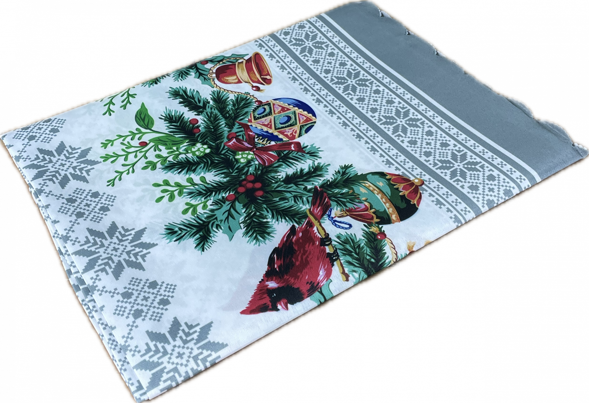 Скатерть тефлоновая 1960 С НОВЫМ ГОДОМ ЕЛОВЫЕ ИГРУШКИ - серый