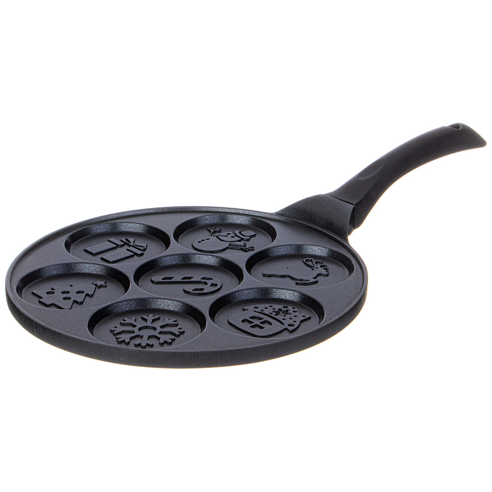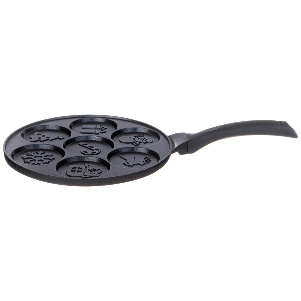 Сковороды AGNESS серии "Зимняя забава" выполнены из литого алюминия. Такая посуда отличается высокой теплопроводностью и устойчивостью к деформациям. Необычный дизайн сковороды позволит приготовить интересные и веселые оладушки и омлеты.
