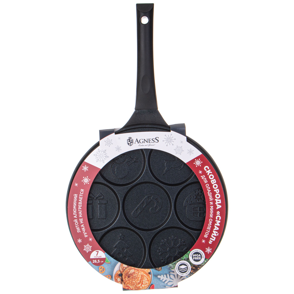 СКОВОРОДА AGNESS "ЗИМНЯЯ ЗАБАВА" ДЛЯ ОЛАДИЙ С АНТИПРИГАР.ПОКРЫТИЕМ ДИАМЕТР=26.5 СМ.(КОР=6ШТ)