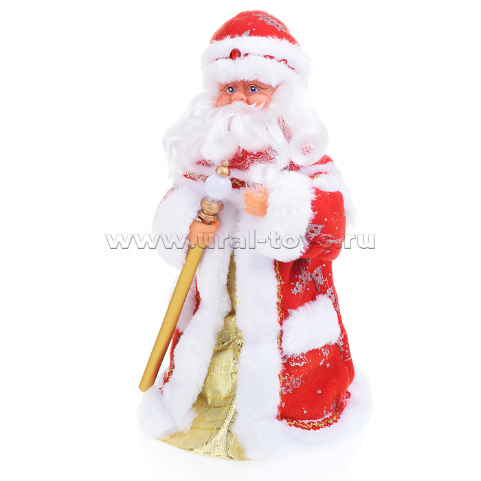 - при включении Дедушка Мороз двигает руками и головой; читает короткое поздравление и воспроизводит фрагмент песни "В лесу родилась ёлочка" (запись автоматически повторяется);