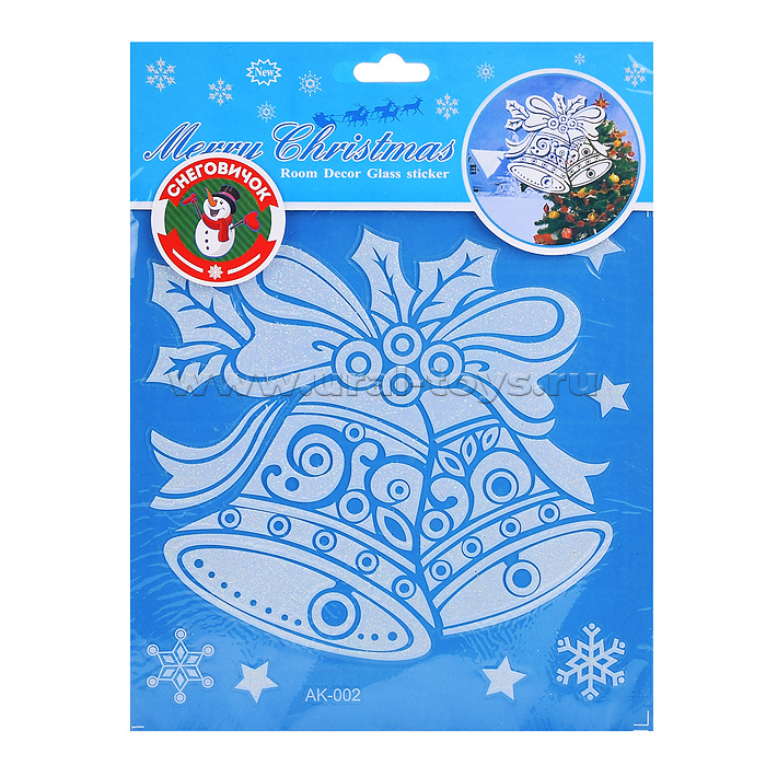 Наклейки новогодние для декора "Новогодний колокольчик" в пакете