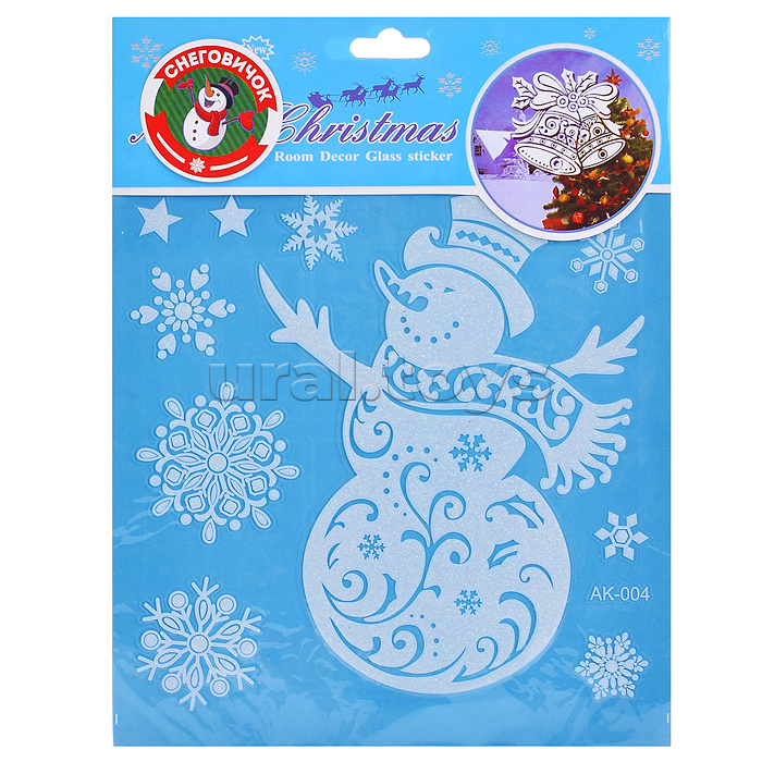 Наклейки новогодние для декора "Новогодний снеговик" в пакете