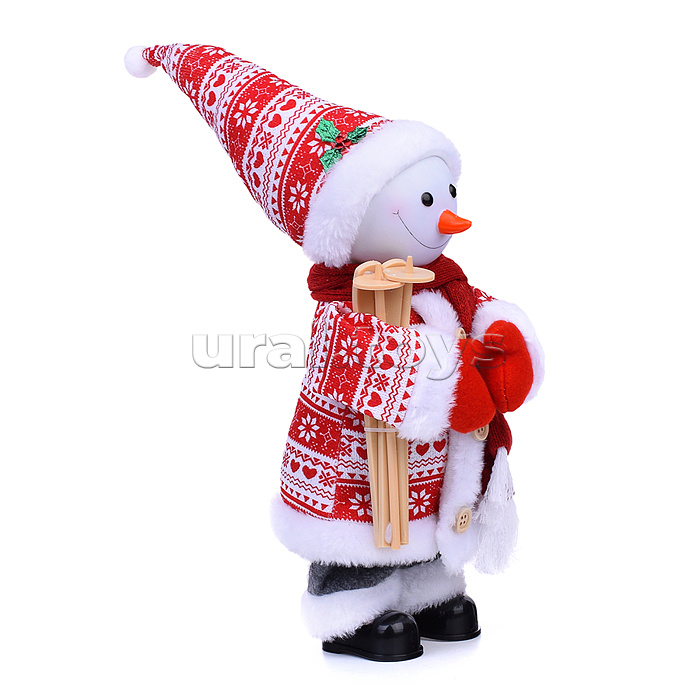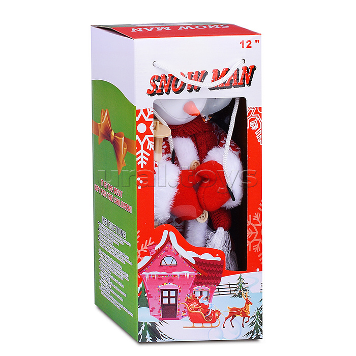 Покачивает головой и разводит руки в стороны под мелодию «Jingle Bells».