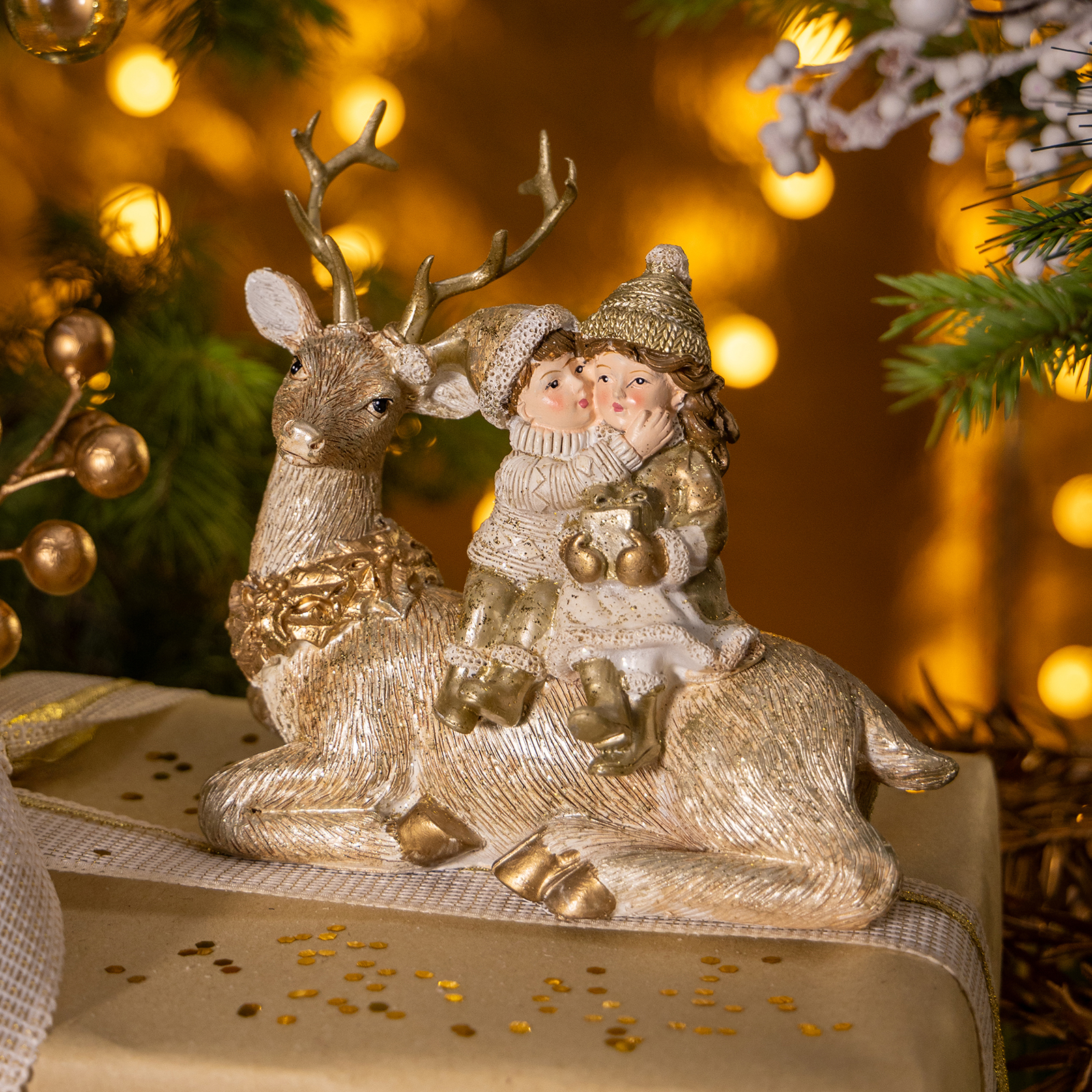 СТАТУЭТКА "ДЕТИ НА ОЛЕНЕ" 14,5Х7Х14 СМ
