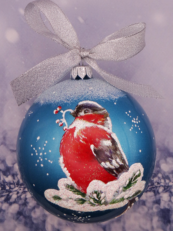 Стеклянный елочный шар Птичка--95 мм