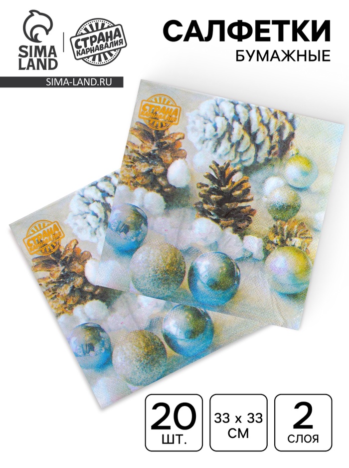 Салфетки новогодние бумажные «Ёлочные игрушки», 33×33 см, набор 20 шт.