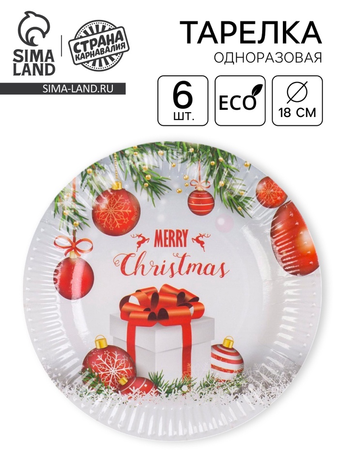 Тарелка бумажная одноразовая «С Новым Годом», набор 6 шт.