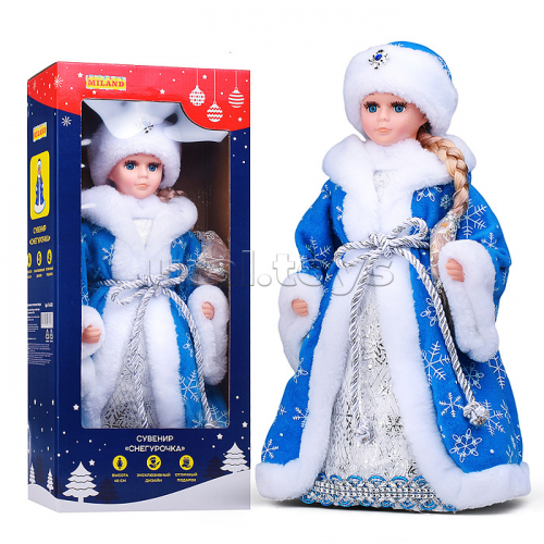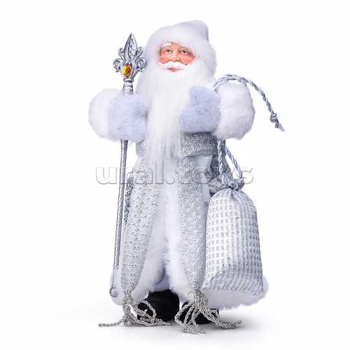 Сувенир "Дед Мороз" в бело-серебристой шубе с посохом, собственная разработка, 30 см