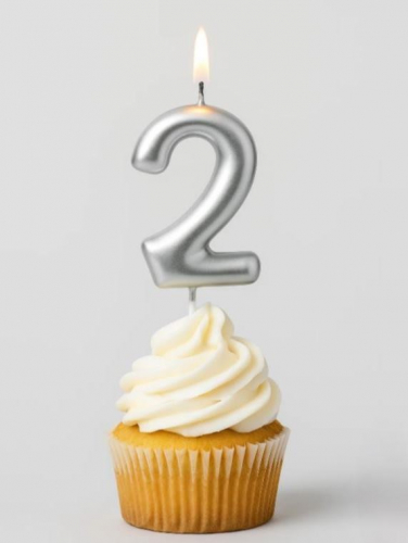 Свеча для торта "Silver glow" цифра 2, (6 см)
