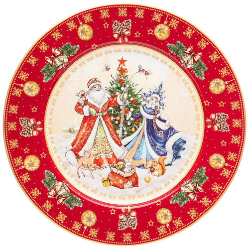 ТАРЕЛКА ОБЕДЕННАЯ LEFARD "ДЕД МОРОЗ И СНЕГУРОЧКА" 27 СМ КРАСНАЯ (КОР=18ШТ.)