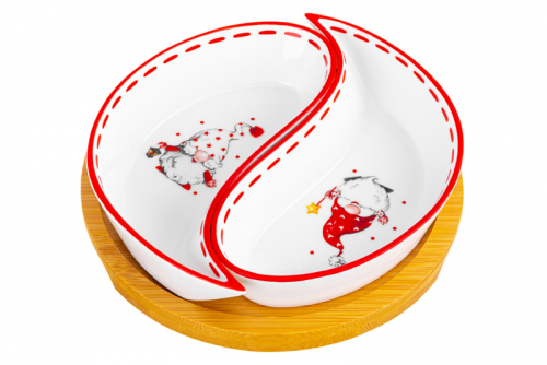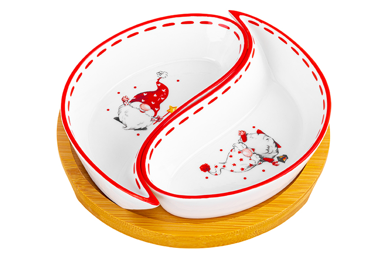 Тарелка под оливки из серии «Весёлые гномики» от Elan Gallery подойдёт для эстетичной сервировки вашего стола. Общий размер изделия – 15х15х3,5 см. Размер каждой ёмкости – 14х7х2,5 см, объём – 100 мл. Выполнена из высококачественного белого фарфора. Он не впитывает цвет продуктов и легко отмывается, благодаря чему надолго сохраняет свою белизну. Поверхность изделий украшает яркий рисунок в виде забавных гномиков. Подставка выполнена из натурального бамбука. Размер – 15х15х1 см. Менажница поможет красиво подавать маслины, орехи или сыры. Она станет незаменимым элементом праздничных обедов или неторопливых завтраков. Послужит в качестве конфетницы, позволив угостить себя и гостей любимыми сладостями: конфетами, мармеладом, леденцами и безе. Фарфоровая посуда с изображением маленьких новогодних помощников привнесёт в любое помещение дух волшебства и праздника! Это оригинальный элемент вашего декора. Не рекомендуется применять абразивные моющие средства. Без бамбуковой подставки подходит для использования в посудомоечной машине и микроволновой печи. Бамбук нельзя замачивать! Поставляется в дизайнеркой картонной коробке – благодаря ей вам не потребуется дополнительная подарочная упаковка. Изделие станет прекрасным сувениром на память и отличным подарком для друзей и близких. Серия «Весёлые гномики» от бренда Элан Галерея поможет вам погрузиться в атмосферу Нового года и Рождества и наполнит ваш дом зимним уютом!