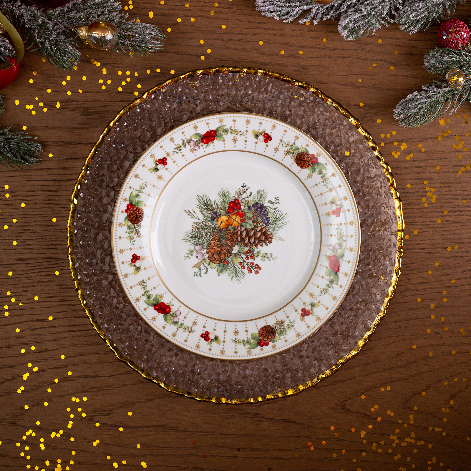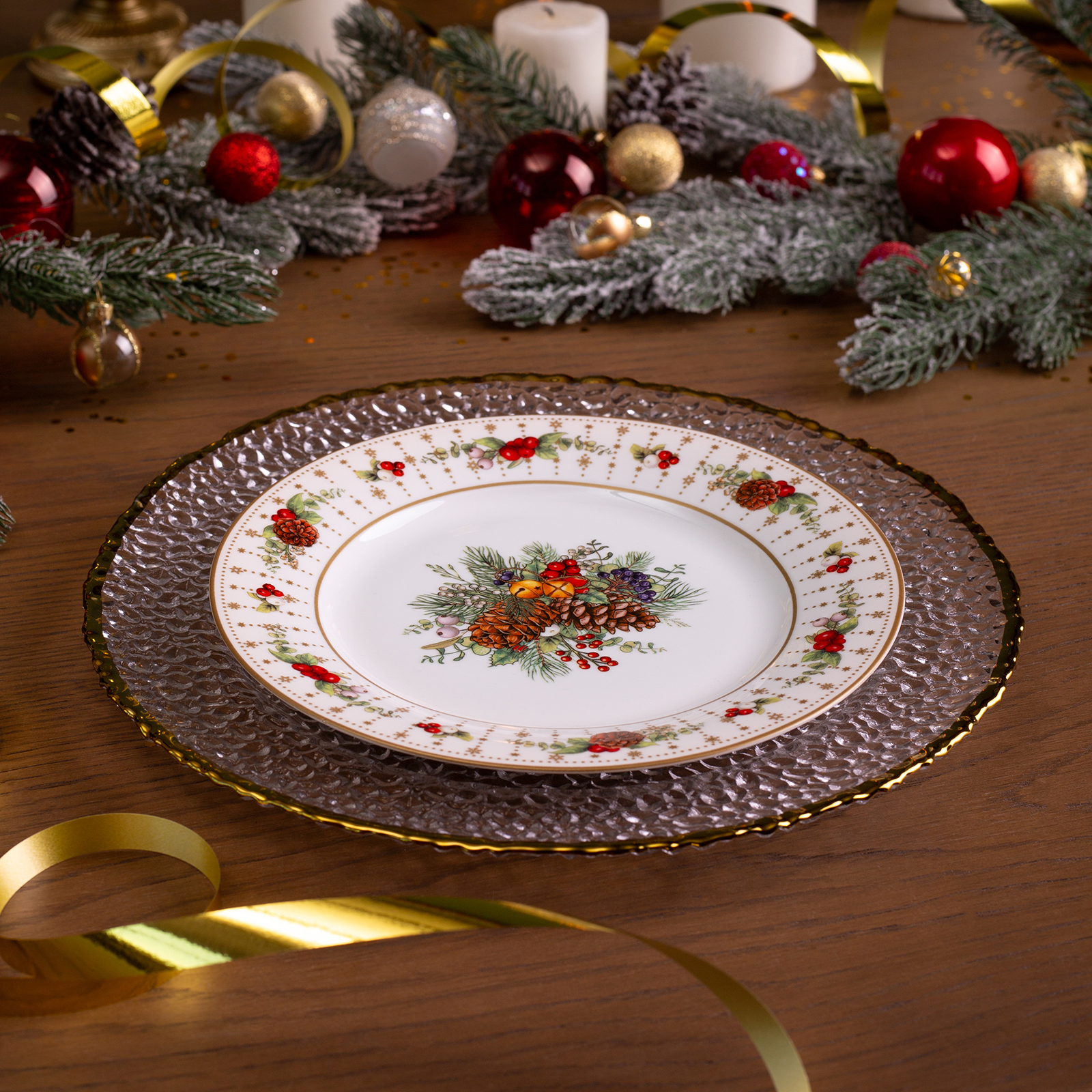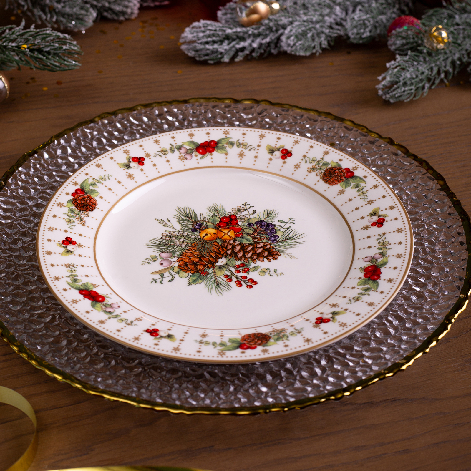 ТМ LEFARD представляет коллекцию "Торжество - Celebration" - изящная сервировка Новогоднего стола. Изделия с любимым символом и атрибутом Нового Года - Елкой выполнены на тонкостенном высококачественном фарфоре. Посуда упакована в красочные коробки. Это прекрасный подарок. Продукция прошла сертификацию, безопасна для контакта с пищевыми продуктами. Можно использовать в СВЧ, не рекомендуется мыть в посудомоечных машинах во избежание повреждения золотой отводки (деколи) на изделиях.