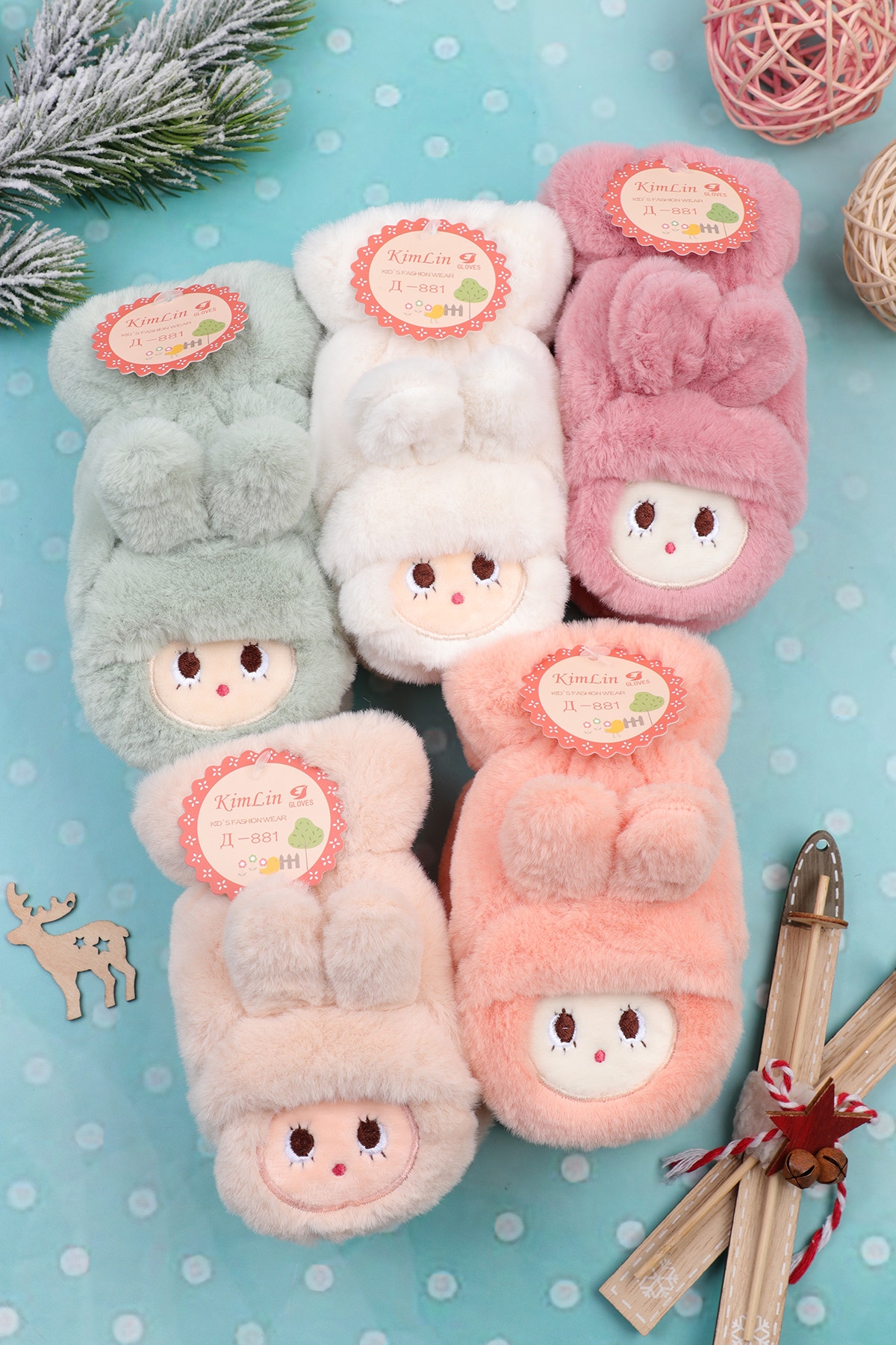 Варежки детские "KimLin" (двойные, на меху) №Д881 - 2-4 года