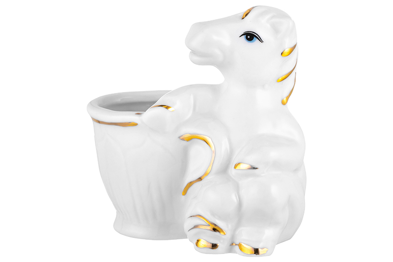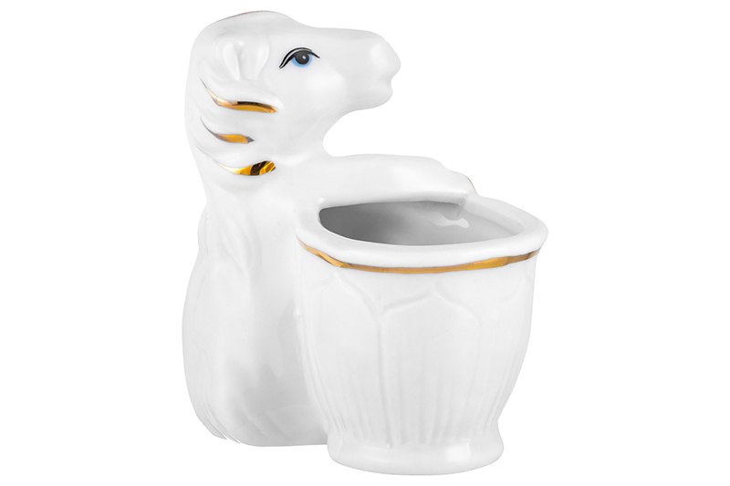 Вазочка для зубочисток 6,5*4*7 см "Лошадь" белая с золотом, фарфор