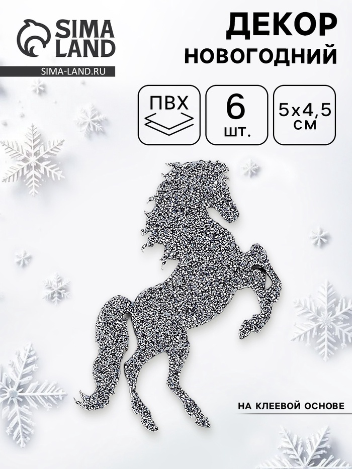 Декор новогодний «Лошадки» на клеевой основе, графит, набор 6 шт.