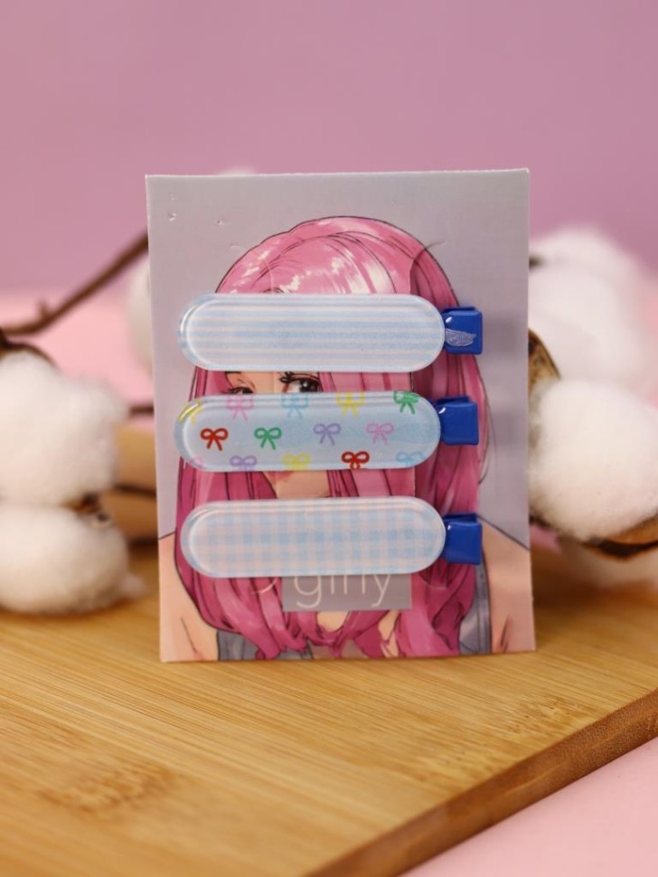 Практичный набор заколок для волос с ярким дизайном. Удобно фиксируют волосы, не повреждая их, подходят для повседневного использования и создания аккуратных причёсок. Комплект упакован на картоне с европодвесом.