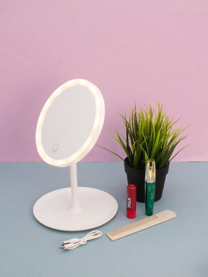 Элегантное настольное зеркало с LED-подсветкой — стильный и удобный аксессуар для ухода за собой. Размер 28 x 17,5 см обеспечивает комфортный обзор, а сенсорная кнопка позволяет легко переключать три режима освещения: холодный, теплый и смешанный свет. Это помогает создать идеальные условия для макияжа и ухода за кожей при любом освещении. В комплект входит кабель Micro USB для зарядки, что делает зеркало удобным и автономным. Устойчивая круглая подставка и лаконичный дизайн делают его отличным дополнением к вашему туалетному столику или рабочему пространству. Размер коробки: 19 x 18,6 x 5,8 см.