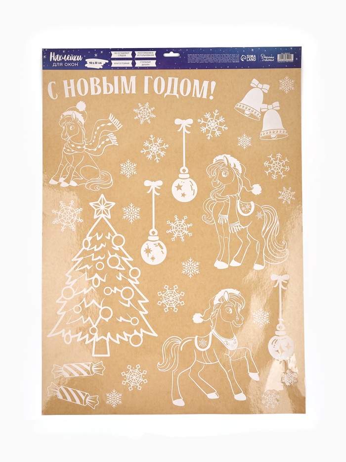 Наклейки на окна многоразовые «Новый год 2026», лошади, 50 х 70 см