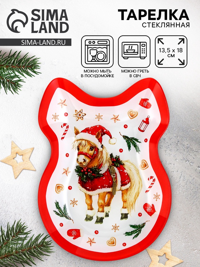 Тарелка плоская новогодняя «Лошадь», 13.5×18 см, стекло