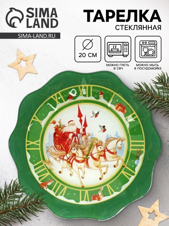 Тарелка плоская новогодняя «Тройка», d=20 см, стекло