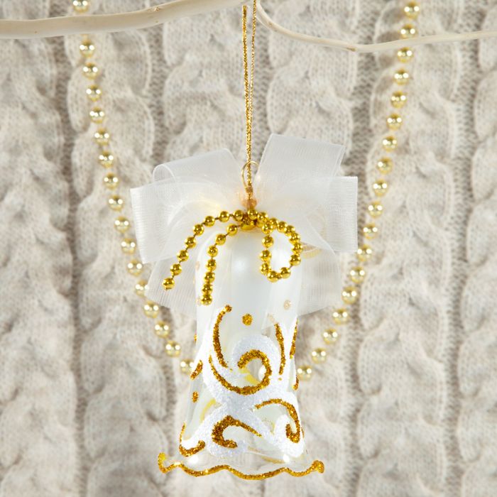Ёлочная игрушка «Узорный колокольчик» — это стильный и светлый элемент для украшения новогодней ёлки. Изделие высотой 8,2 см выполнено из стекла с рисунком и оформлено в виде колокольчика — символа зимнего торжества и добрых традиций. Украшение создано в духе советского дизайна с отсылкой к датскому минимализму, классике и шебби-шик — решение для тех, кто ценит свет, форму и атмосферу праздника.