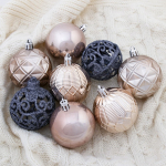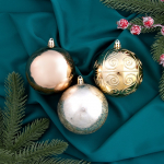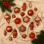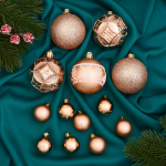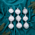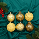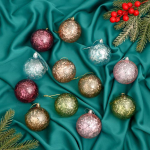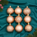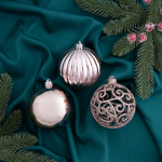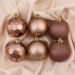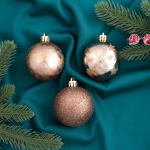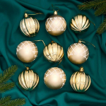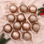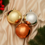 Эти шары добавляют тепла и простоты в новогодний интерьер, отражая свет гирлянд и подчёркивая атмосферу праздника. Их лаконичный дизайн помогает создать стильный и спокойный образ, который остаётся актуальным из года в год.