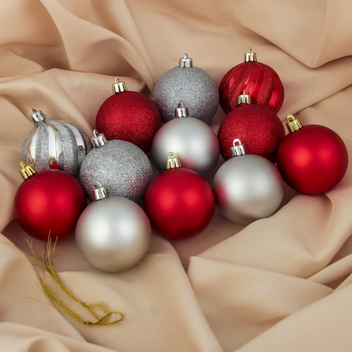 Набор из трёх новогодних шаров диаметром 8 см выполнен в бело-золотистой гамме, объединяя классический и советский стили. Пластиковые украшения с изящным рисунком создают атмосферу традиционного праздника и гармонично дополняют праздничный декор.