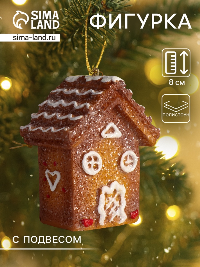 Эта подвеска в виде расписного домика создаёт на ёлке атмосферу старого доброго праздника. Она напоминает об уютном зимнем вечере, когда за окном идёт снег, а в доме пахнет имбирным печеньем и хвоей. Тёплый коричневый цвет и рельефная глазурь делают украшение объёмным и детализированным.