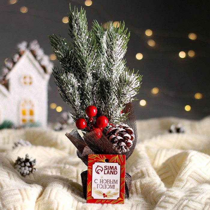 Композиция «Новогодние веточки с шишками», 20×22×27 см