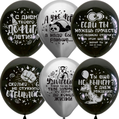 Яркие цветные латексные шары с рисунком дополняют друг друга, т. к. оформлены в одном стиле и тематике.