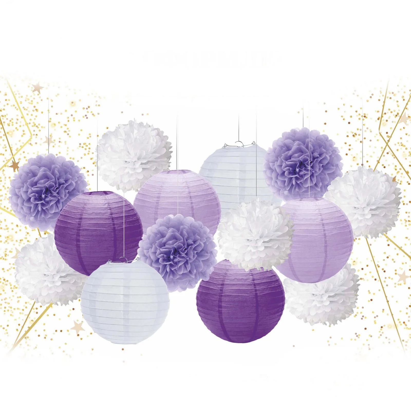 Набор помпонов и фонариков "Весёлый праздник" (14 предметов), Сиреневый/Белый