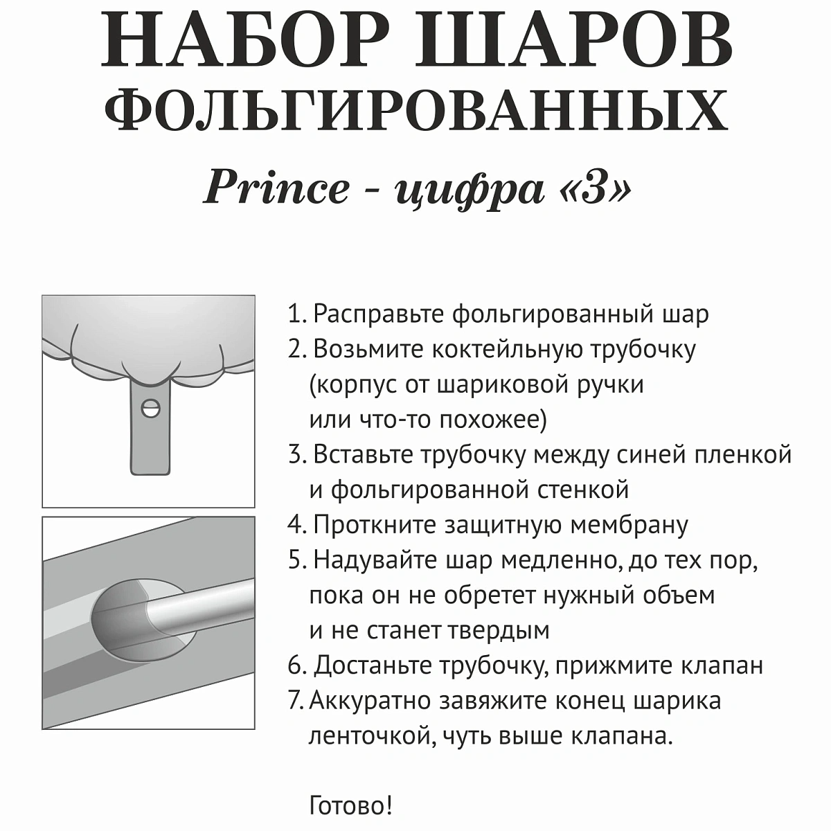 Набор шаров 8 шт "3 - Prince", голубой (цирфа + 7 шаров)