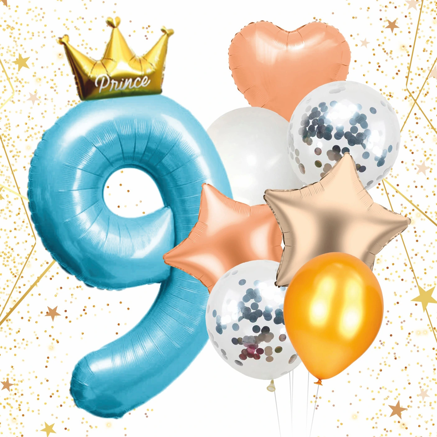 Набор шаров 8 шт "9 - Prince", голубой (цирфа + 7 шаров)