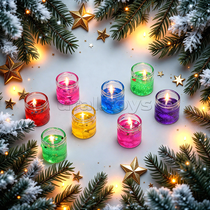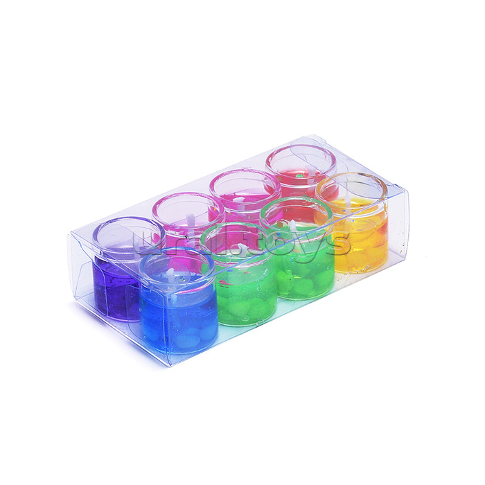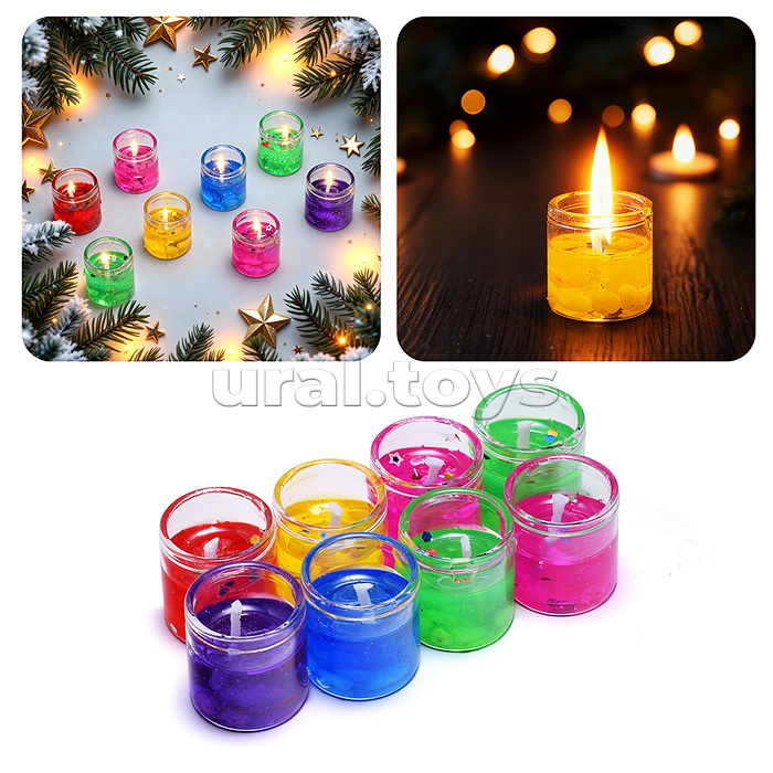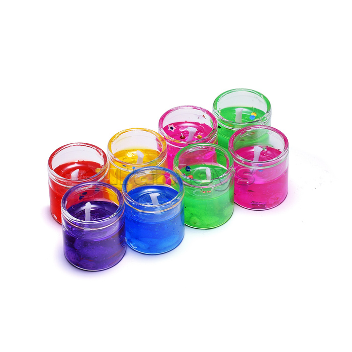 Набор свечей гелевых (8шт х 2,7*2,7см) в стаканчике, с блёстками